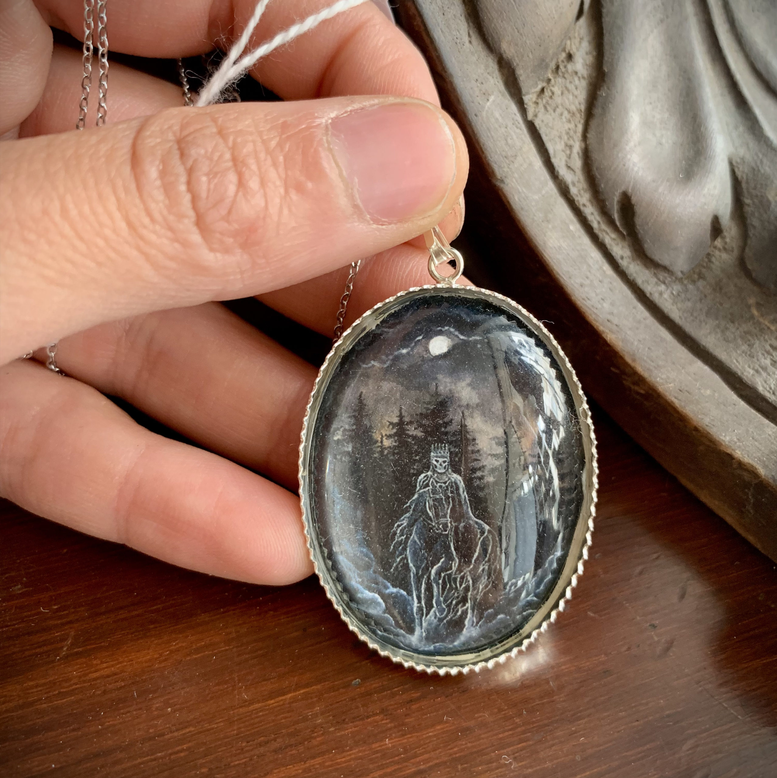 Médaillon en argent 925, chaîne en acier inoxydable.