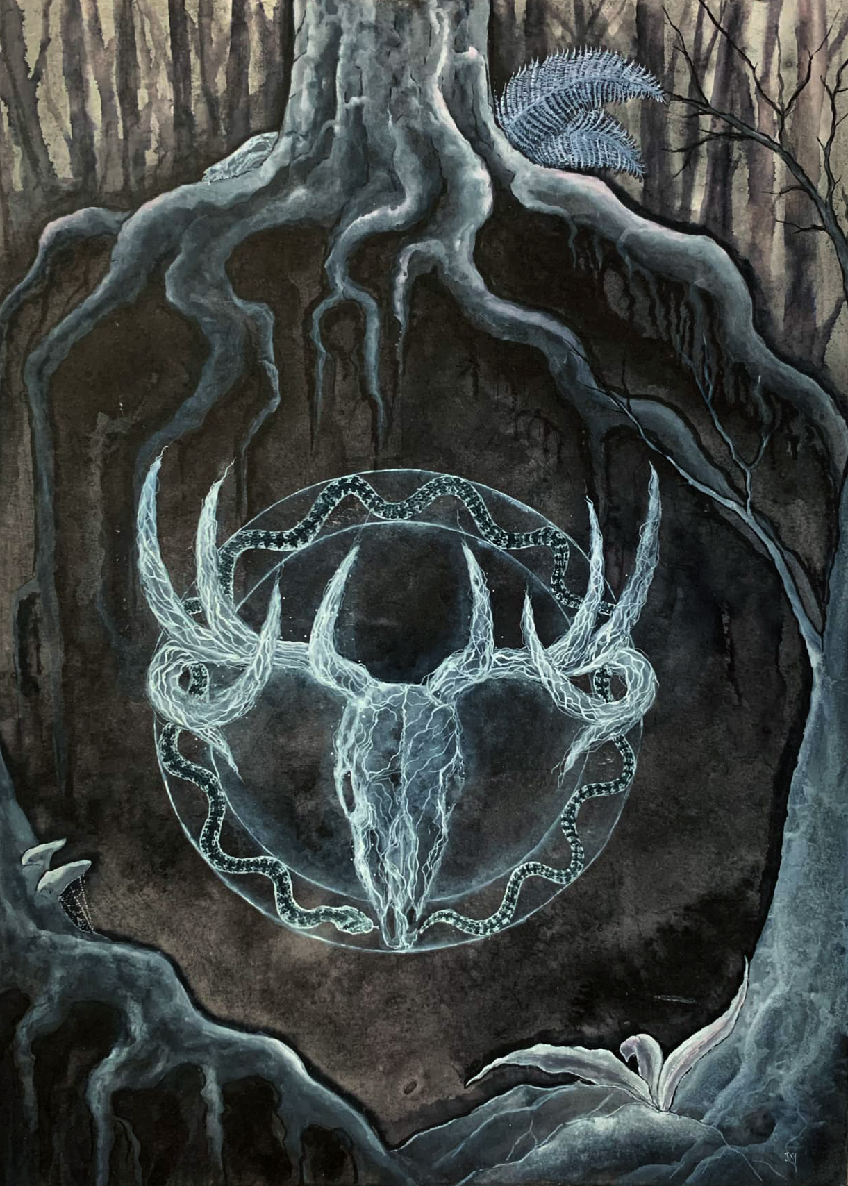 Totem, painting for the cover of Cercle du Chêne’s demo (submitted to copyright, only for personnal use, no diffusion)